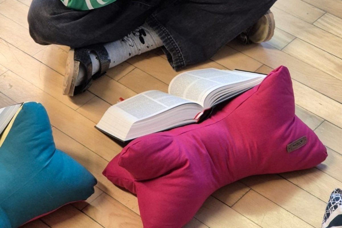 Im Fach Technik und Design haben die Schüler:innen der Klasse 1b tolle Leseknochen genäht. Der Leseknochen ist nicht nur eine komfortable Nackenstütze, sondern auch ein vielseitiges Hilfsmittel, das sich perfekt als Ständer für Bücher oder Tablets eignet.