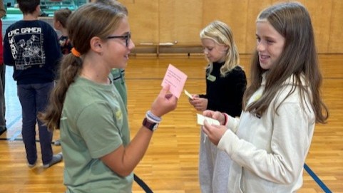 In der zweiten Schulwoche fand der Kennenlerntag unserer 1. Klassen statt. Gemeinsam wurde gespielt, gesungen, gezeichnet. Bei einem „Speed Dating“ konnten sich die Schülerinnen und Schüler gegenseitig besser kennenlernen.